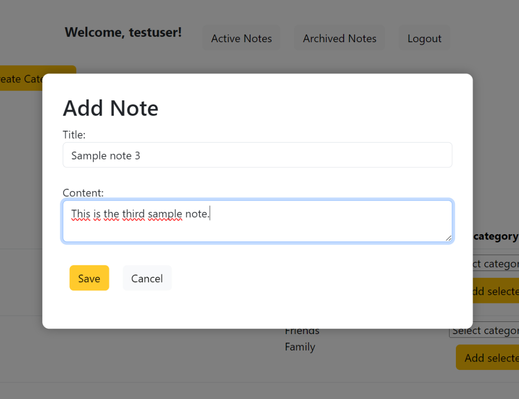 This note management web application was built with Java Spring Boot and JPA for the backend, and ReactJS for the frontend. JWT was used for authentication and authorization. The frontend also features user-friendly pop-up messages for errors and confirmations. Additionally, a shell script was created for installation and execution on Linux.